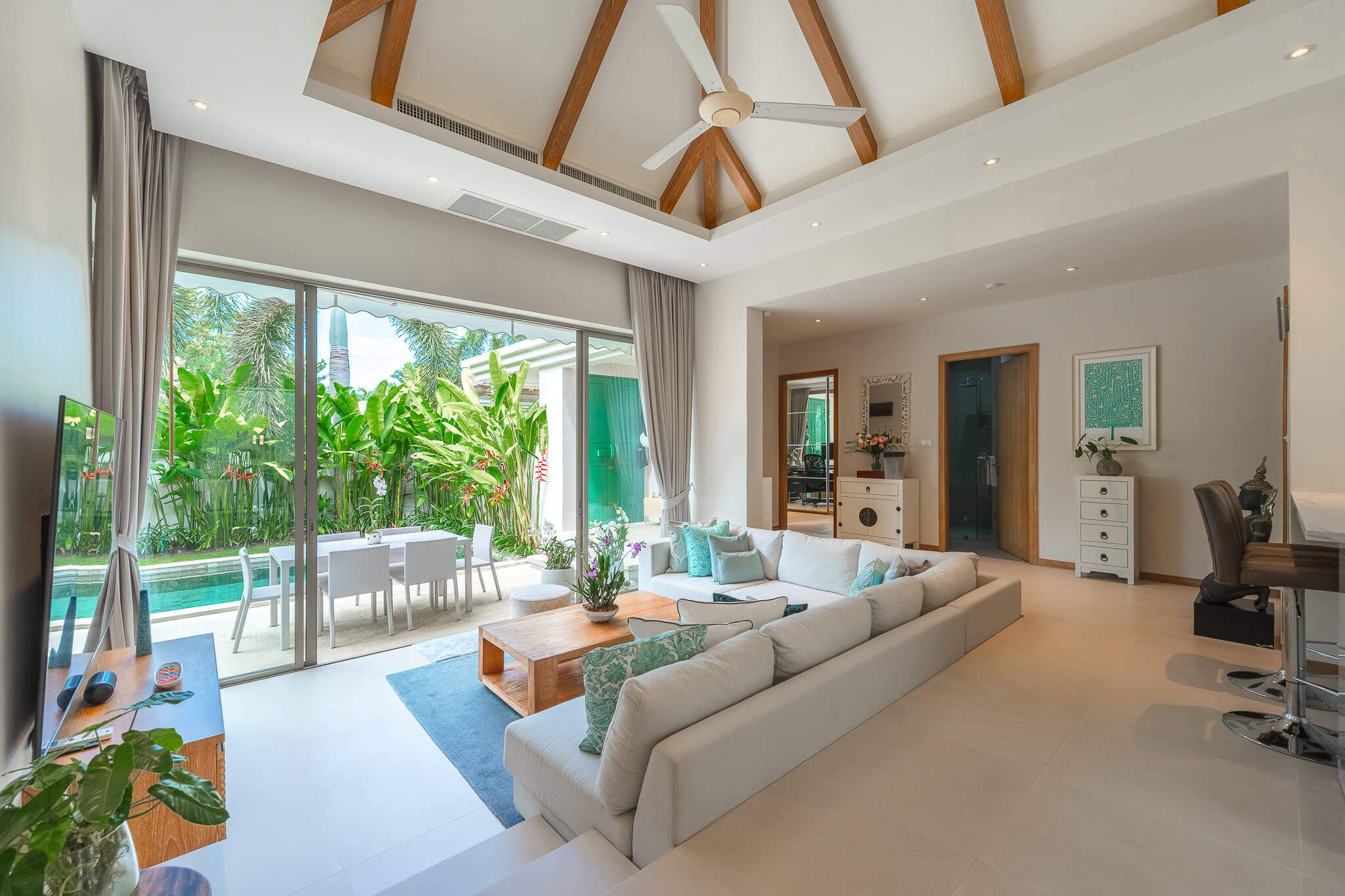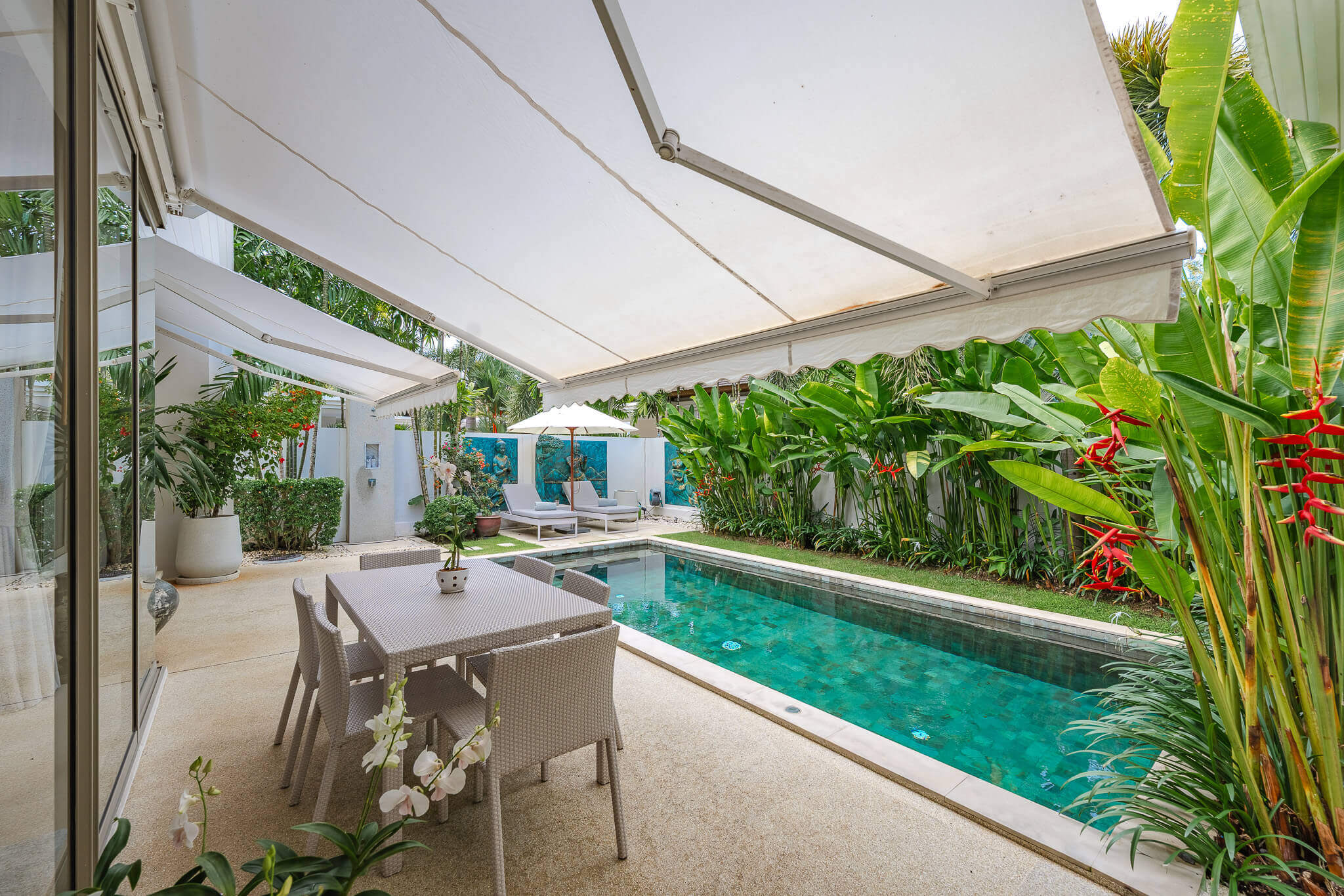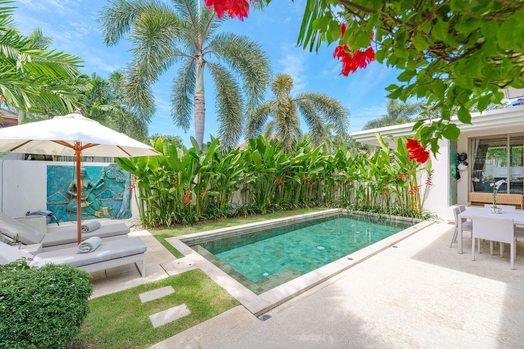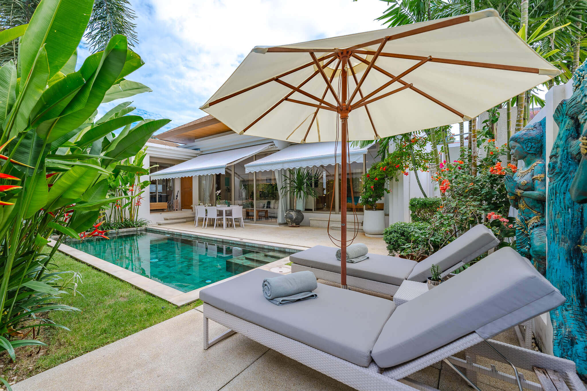 - Private swimming pool surrounded by tropical garden
