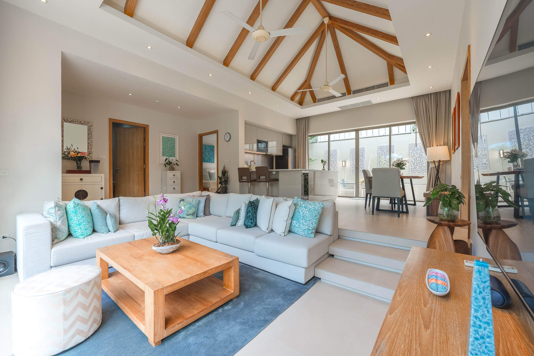 - Open-plan living and dining area with natural light