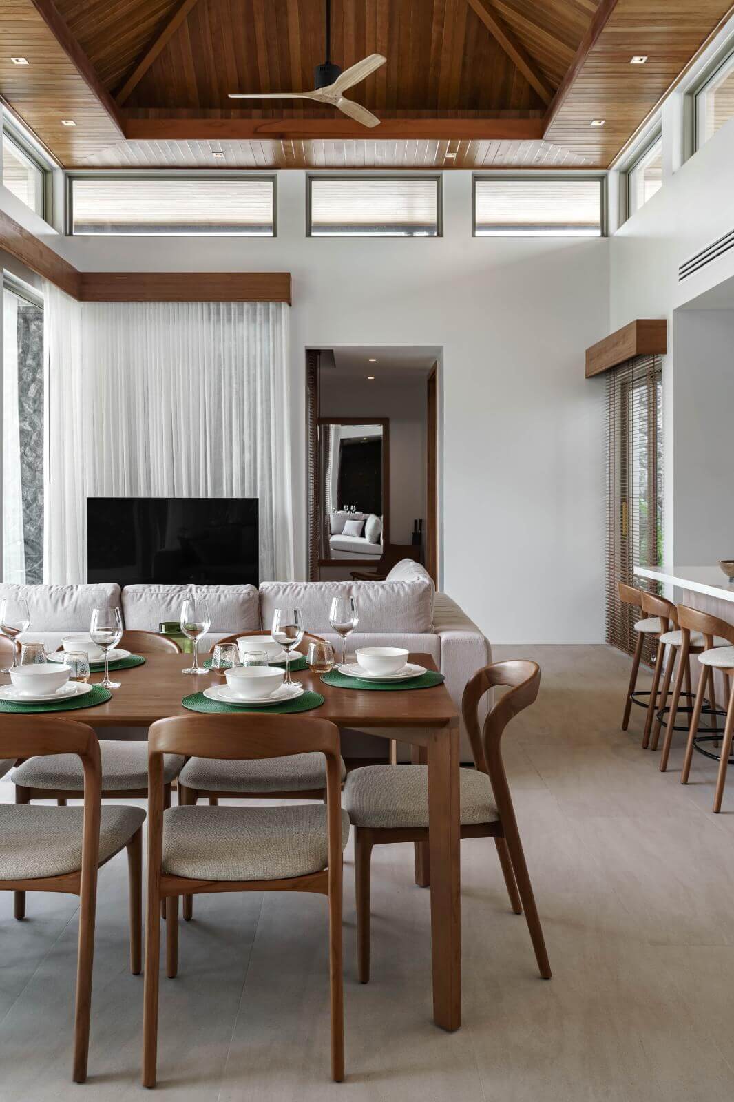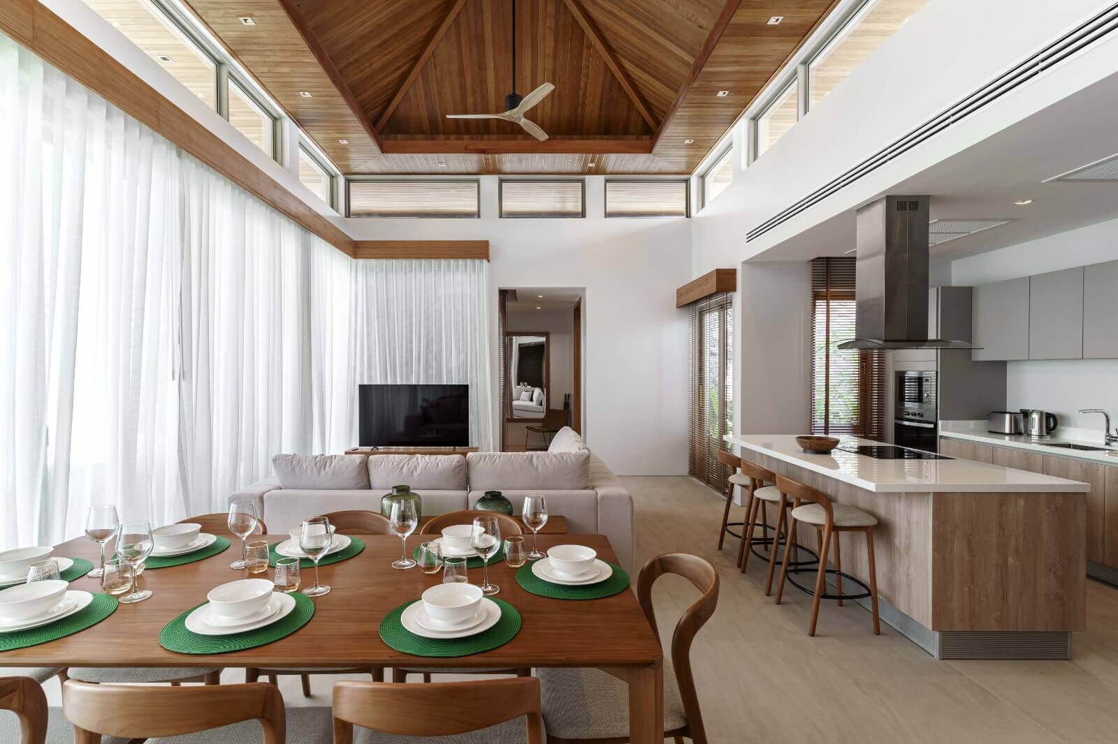 - Open living, dining area