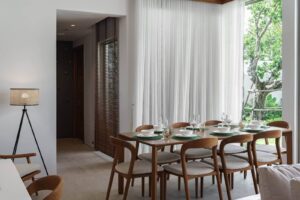 - Common area with gym, pool, restaurant