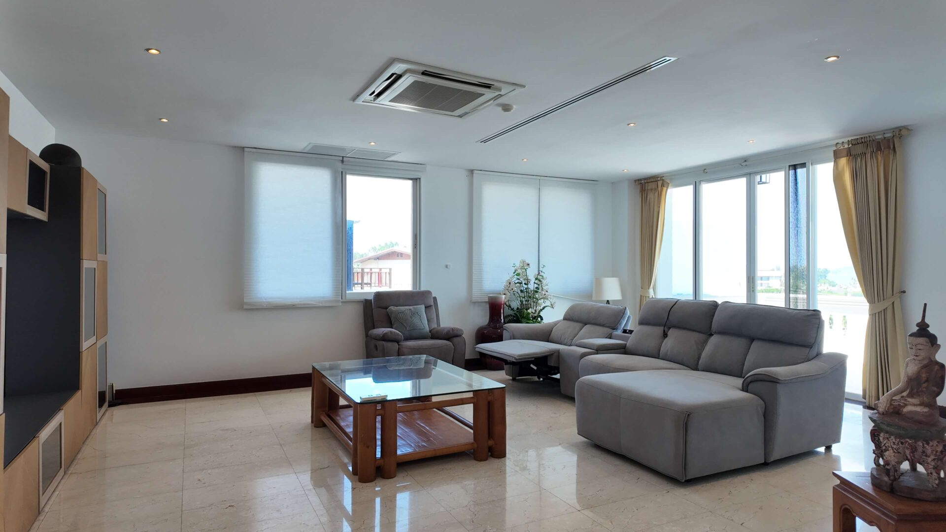 This exceptional 3-bedroom penthouse in Surin offers a rare combination of space, privacy, and panoramic views over the sea, Surin area, and surrounding mountains. Located on the top (5th) floor, the apartment features direct lift access into the unit, ensuring total exclusivity and comfort.