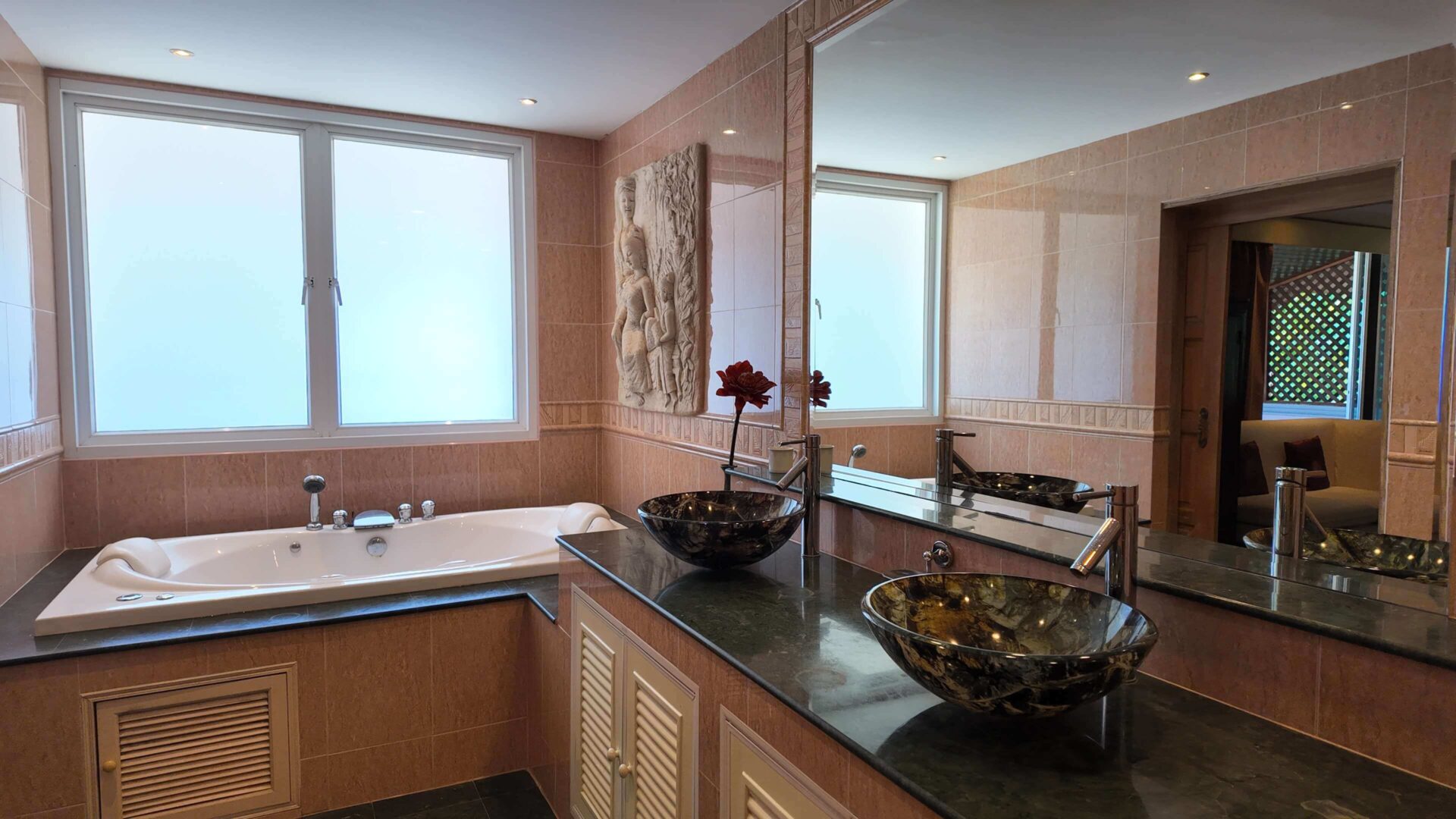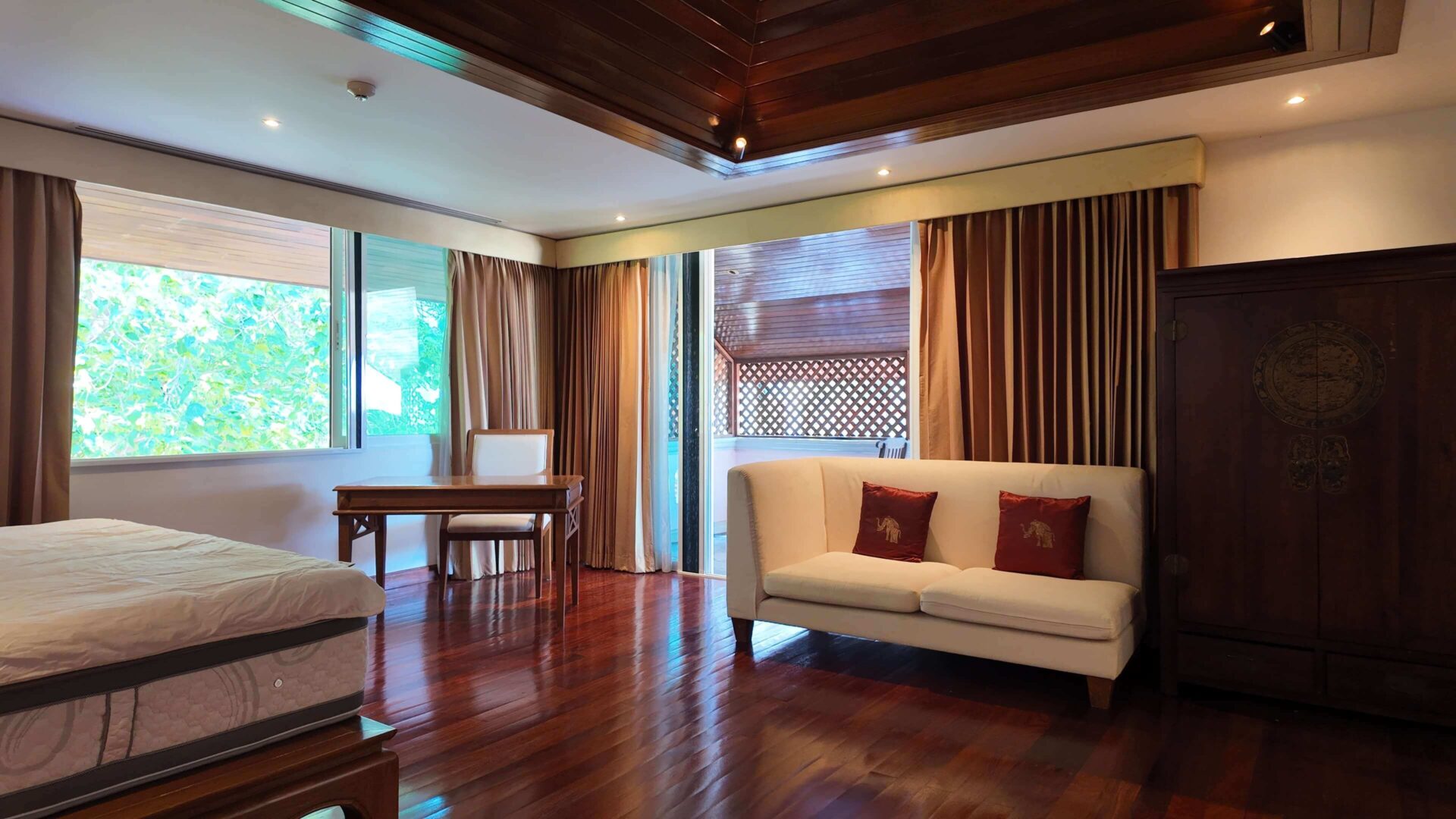 High-quality materials: real teak wood and marble flooring